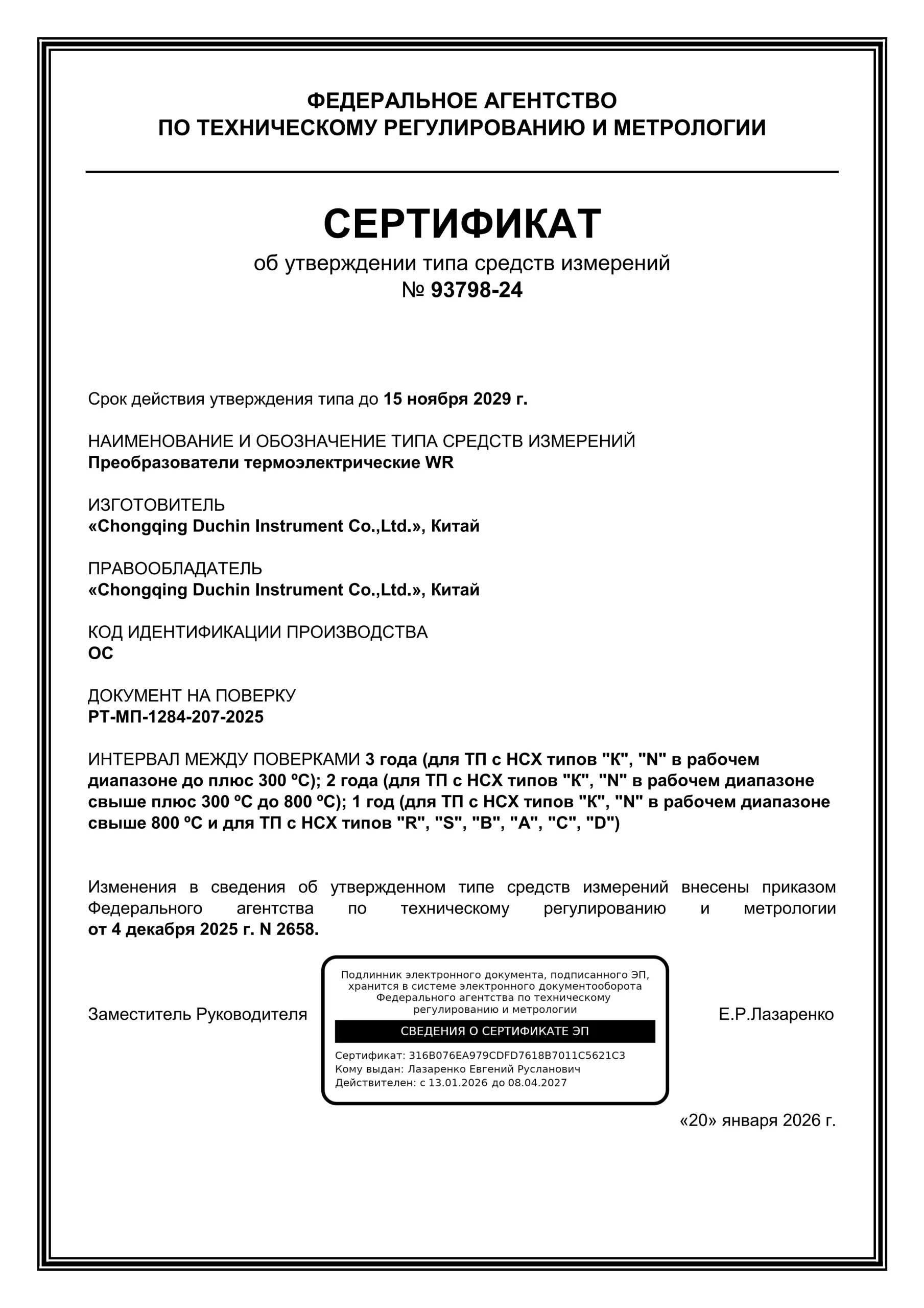Эта сертификация является официальным пропуском для нашей продукции на российский рынок, подтверждая, что качество и технические характеристики нашей продукции полностью соответствуют требованиям российского рынка. Она обеспечит нашим российским партнерам более стабильные, соответствующие стандартам и точные решения для измерения температуры.